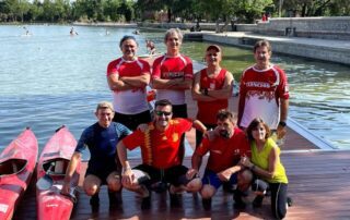 Este sábado, 12 de junio, se concentraron en el Lago de la Casa de Campo los veteranos de los clubes de piragüismo residentes, el Ciencias y el Alberche. Era la quinta edición de la Copa Schweppes, que lleva este nombre por el apoyo de la marca de refrescos que al finalizar la prueba reparte obsequios a los deportistas. En esta edición se juntaron un par de docenas de deportistas veteranos y veteranas para disfrutar de un recorrido de 3000 metros y para seguir disfrutando fuera del agua en el tradicional reparto de premios. En la entrega de premios y obsequios