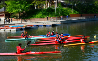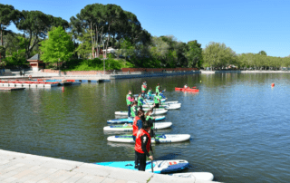 El sábado 17 de abril se disputó en el Lago de la Casa de Campo la competición de piragüismo en aguas tranquilas y en stand up paddle, SUP para los mas pequeños de la escuela del club. Estas pruebas reúnen a los alumnos de las escuelas municipales de piragüismo que desarrolla el Ayuntamiento de Madrid en colaboración con los clubes y se amplía también a deportistas de estas edades en fase de iniciación de los clubes madrileños. La escuela de nuestro club inscribió a 45 chicos y chicas desde cadetes, como contábamos en una noticia anterior, hasta a los benjamines.