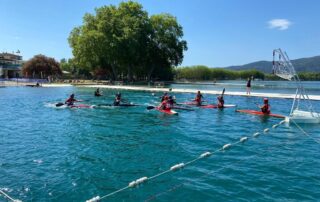 El 19 y 20 de marzo era un fin de semana con dos competiciones importantes marcadas en el calendario del club. La primera era la Copa de España de Maratón. Se desplazó el equipo a Mequinenza, Zaragoza, escuchando en la radio la alerta roja por temperaturas elevadas. Al llegar al campo de regatas se pudo comprobar que no era una exageración, temperatura 44º y un vendaval de 50 km/h. La organización decide modificar distancias, reduciéndolas, y horarios, evitando las horas mas expuestas al sol. El primero en saltar al ruedo fue el C1 juvenil, Juan, un incidente en la primera vuelta le impidió luchar por mejorar su puesto final, 8º. Los segundos en competir fueron los sub-23, Claudia, Iker, Pablo y Adrian en K1, que finalizaron 9ª, 21º, 23º y 26º respectivamente entrando casi todos en control y puntuando. En la siguiente salida tomaron parte las canoas senior. Alvaro acabó 6º, superado por los cinco internacionales que representarán a España en el Europeo y Mundial, y Noelia 2º, llevándose la medalla