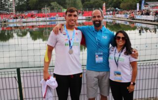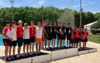 La última cita de la temporada internacional de kayak polo para selecciones nacionales fue el Campeonato del Mundo organizado en la localidad francesa de Sant Omer. A esta cita y después de las diferentes cribas que establecieron los técnicos de la Federación Española llegaron los palistas senior del club Alejandro Blanco, Alex, y Regina del Pilar Calvo, Gina o la señora presidenta. Fuera de la lista final quedaron un montón de palistas sub-21 y senior que siguen entrenando en el club esperando su oportunidad en futuras convocatorias muy animados por los éxitos de los equipos nacionales. Alex se ha colgado la medalla de plata, la de subcampeón del mundo, con sus compañeros de la senior. Perdieron la final en el tiempo añadido por gol de oro tras finalizar empatados los dos tiempos reglamentarios. Gran resultado que compensa los años que lleva entrenando. El equipo senior femenino con Gina finalizó en séptima posición, resultado similar al de los últimos años. Este equipo se verá reforzado en las próximas temporadas por las chicas