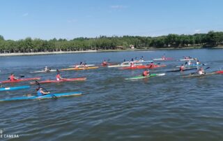 Otro fin de semana cargado de competiciones nacionales. Se quedaron en Madrid a jugar torneos de las Ligas Nacionales de kayak polo el equipo de tercera división y el sub-21 masculino. Jugaron en el Parque Deportivo de Puerta de Hierro con resultado dispar. Los sub-21 consiguieron subir al segundo puesto del pódium, su mejor resultado esta temporada, después de perder la final mientras que el equipo de tercera finalizó en el undécimo, último puesto, de la clasificación final del torneo. A los dos equipos les queda por disputar el torneo que cierra sus respectivas ligas nacionales que se celebrará en tierras gallegas, en Verducido, Pontevedra, el primer fin de semana de Julio. También en Galicia, pero en Muiños, Orense, se disputó el Campeonato de España de Media Maratón. Arrancaron en competición los cadetes, K2 masculino y femenino (Javier con Alvaro y Nuria con Jimena) y el C1 femenino (Lorena). Mejoraron sus prestaciones y cada vez están mas cerca de los de adelante. En el C1 juvenil Juan Solanas acabó séptimo.