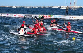 Mal empezó el equipo masculino del club de primera división de kayak polo. Se desplazaron a San Pedro del Pinatar, Murcia, con las máximas aspiraciones por los resultados de la temporada anterior y el balance de los entrenamientos de esta. Con el primer partido ya empezó a torcerse la cosa, empate con Arcos, recién ascendido y último clasificado a la postre. Continuó la racha con las derrotas frente a Rodeira, 1-5, y contra Castellón 1-3. En el último partido del grupo vencieron 7-6 a Picassent y luego en las semis y final para los puestos del 5º al 8º vencieron por un gol a los ferrolanos del Copacabana y a los valencianos de Alacuás. Un quinto puesto muy alejado de las expectativas generadas la temporada pasada y que obliga a realizar muy buenos resultados en los tres torneos que restan de la Copa de España. El torneo lo ganó Castellón a Vallehermoso Retiro dejando la tercera posición a Rodeira El equipo femenino viajo junto al equipo de chicos a disputar