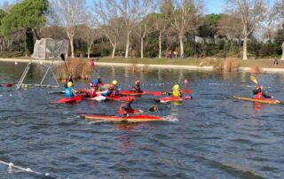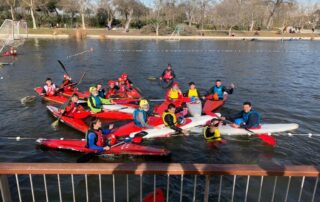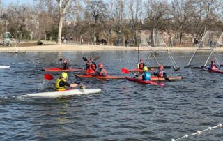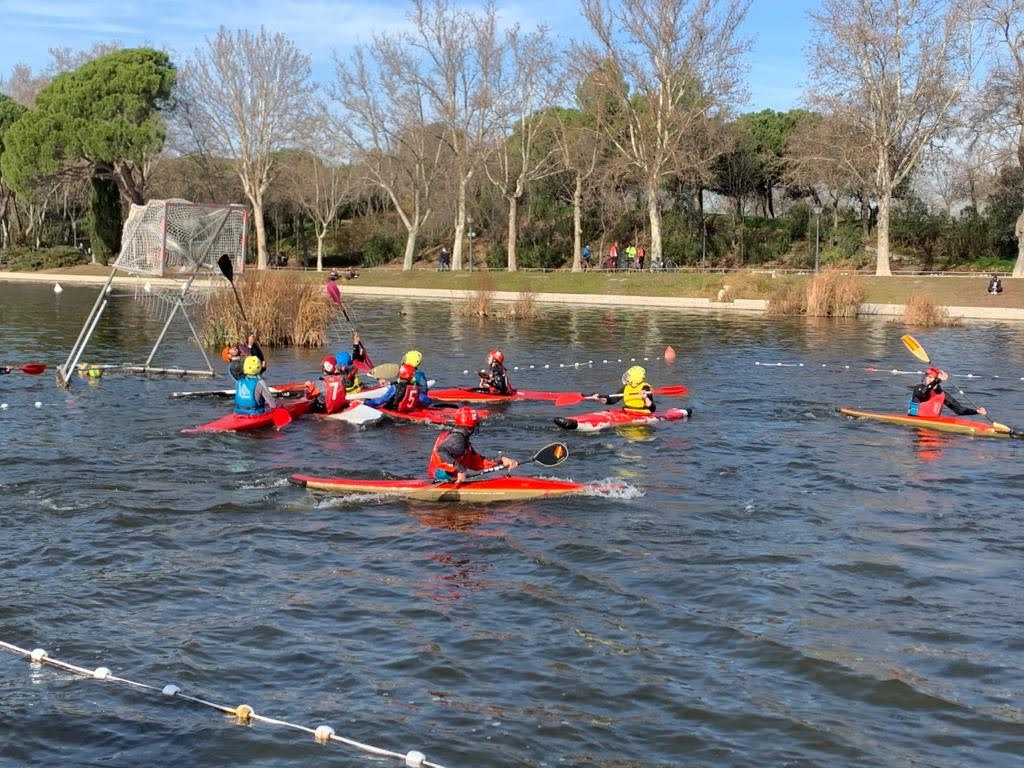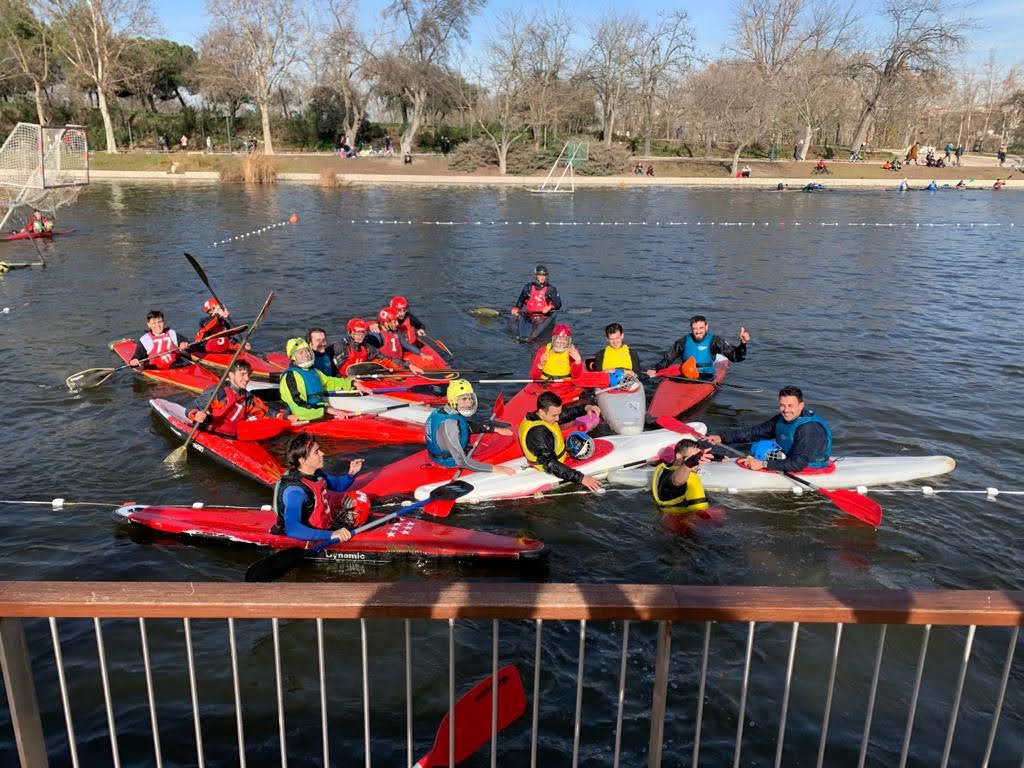 El pasado domingo, un grupo de diez estudiantes de INEF de la Universidad Politécnica de Madrid acudieron al Lago de la Casa de Campo para enfrentarse al equipo sub-21 en un partido de Kayak polo. Este partido supondría una práctica para estos chicos y chicas de cuarto de carrera. La asignatura que cursan es Actividades de Orientación y Multiaventura y su profesor, Vicente Gómez, acompañó y apoyó a sus alumnos en todo momento. El equipo visitante contaba únicamente con la teoría dada en clase con anterioridad. Sin embargo, esto no fue impedimento para que demostraran una actitud competitiva que sorprendió al equipo local. El partido transcurrió con total normalidad exceptuando algún vuelco por parte del equipo menos experimentado. Fue un juego amistoso y didáctico, los estudiantes pudieron conocer de cerca las estrategias y sensaciones durante el juego. Está claro que la experiencia ha influido positivamente en la formación académica, deportiva y personal de estos jóvenes universitarios.