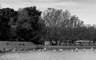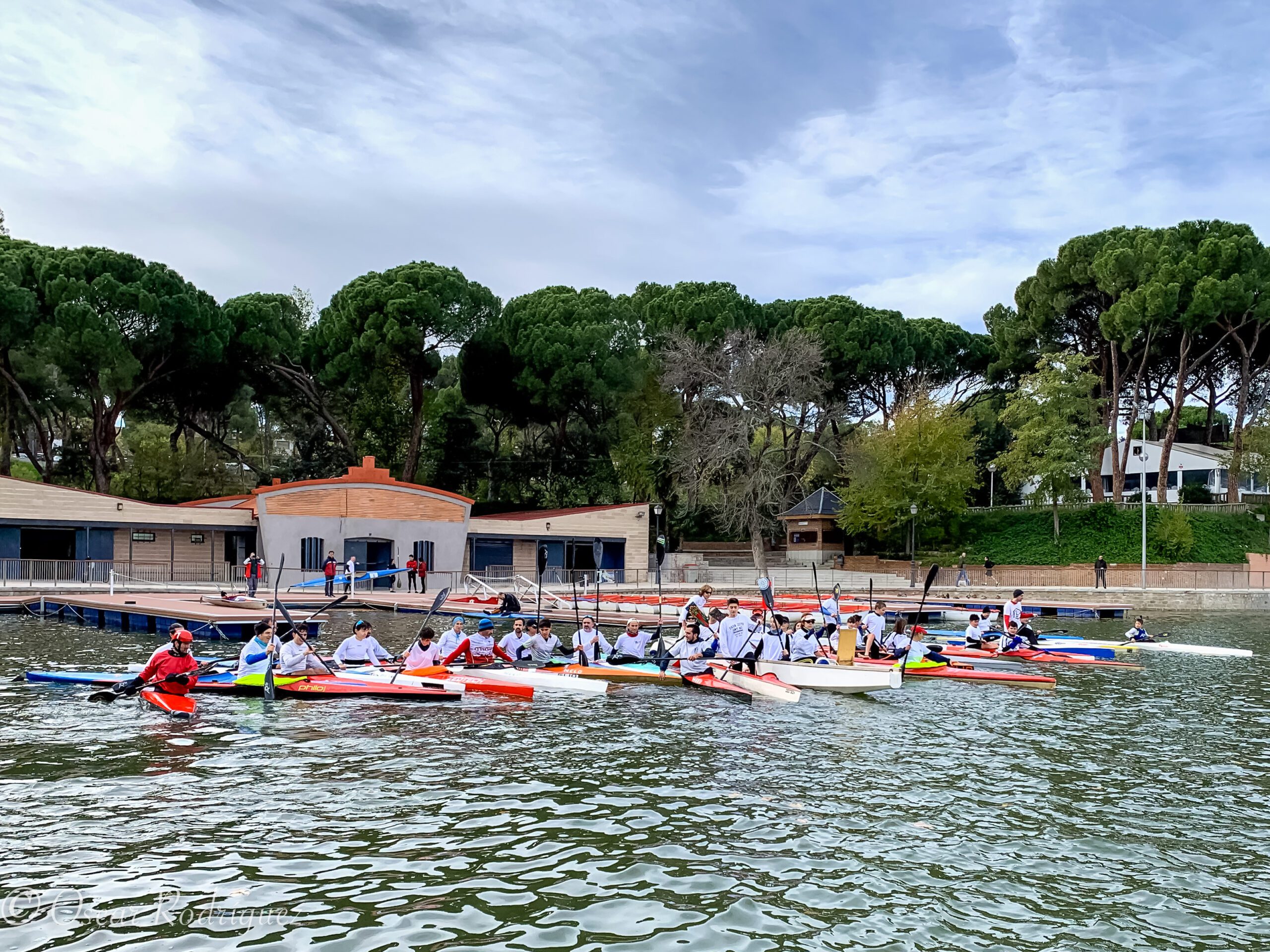 El último domingo de Noviembre se reunieron en el Lago de la Casa de Campo un montón de piragüistas unidos por la amistad que compartieron con Javier Garcia. Javier falleció este verano en un trágico accidente mientras disfrutaba de las vacaciones familiares. Durante muchos años fue un fijo en el Lago, se daba la paliza paleando y compartía tertulia o cañas si la agenda se lo permitía. El domingo se juntaron veteranos y veteranas con los jóvenes del equipo de sprint, donde militó varios años su hijo Maximo, para rendirle homenaje en presencia de su mujer Esther. Al nutrido grupo de amigos de Javier en kayak o canoa se sumo la tripulación del dragón que embarcó a Esther para compartir con todos el homenaje. Al finalizar el paleo se realizó un sencillo acto y entre cervezas y vinos se hizo entrega de una placa recuerdo entre el cariño de todos los y las piragüistas. El homenaje duro unas horas pero Javier estará con nosotros en el Lago mucho tiempo.