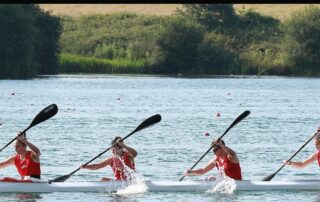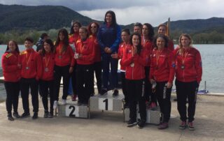 El primer fin de semana de Julio se disputó en el embalse de Trasona, Asturias, el Campeonato de España de Sprint junior y senior. El equipo del club inscribió después de muchos años sin participación el K4 femenino. Maria, Gina Helen y Claudia además de competir en otras pruebas en K1 y K2 compitieron en la tres distancias del K4, 200, 500 y 1000 metros. Con una nutrida participación, estimulada por el formato de liga Iberdrola, se metieron en la final de 1000 y se quedaron fuera en las otras dos distancias por décimas. También entraron en final C Gina en K1-200 y María y Claudia en K2-200. Noelia compitió con su C1 en 200 y 500 quedando en un brillante sexto puesto en las dos finales. Muy bueno el balance del campeonato de las chicas que cierran la temporada de sprint y junto con el grupo de chicos finalizarán el curso con regatas de descensos y travesías.