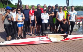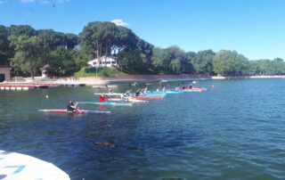 El sábado 18 de mayo organizó el grupo de kayak-turismo del club la cuarta edición de la jornada lúdico deportiva para los piragüistas del Lago. Con una inscripción de 25 deportistas se dio la salida a las 10:30 sobre un recorrido de 4 vueltas, unos 3000 metros. Rodeados por los palistas de competición, que hicieron una pausa en su entrenamiento, y que no pararon de animar completaron el recorrido los y las palistas del Ciencias y del Alberche que previamente habían acreditado no bajar de 27 minutos en el recorrido. Este test de calidad no fue necesario para la segunda parte de la actividad que se desarrollo en el bar próximo al embarcadero. Allí departieron todos los deportistas y acompañantes, recuperaron los líquidos y minerales perdidos e hicieron entrega de las medallas y obsequios que los organizadores habían preparado. Una gran jornada que esperamos se repita todos los años y siga incrementando su participación fortaleciendo la sección de turismo de los clubes del Lago.