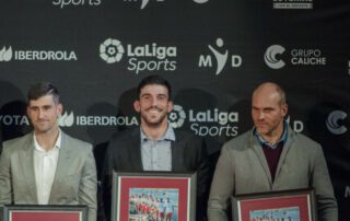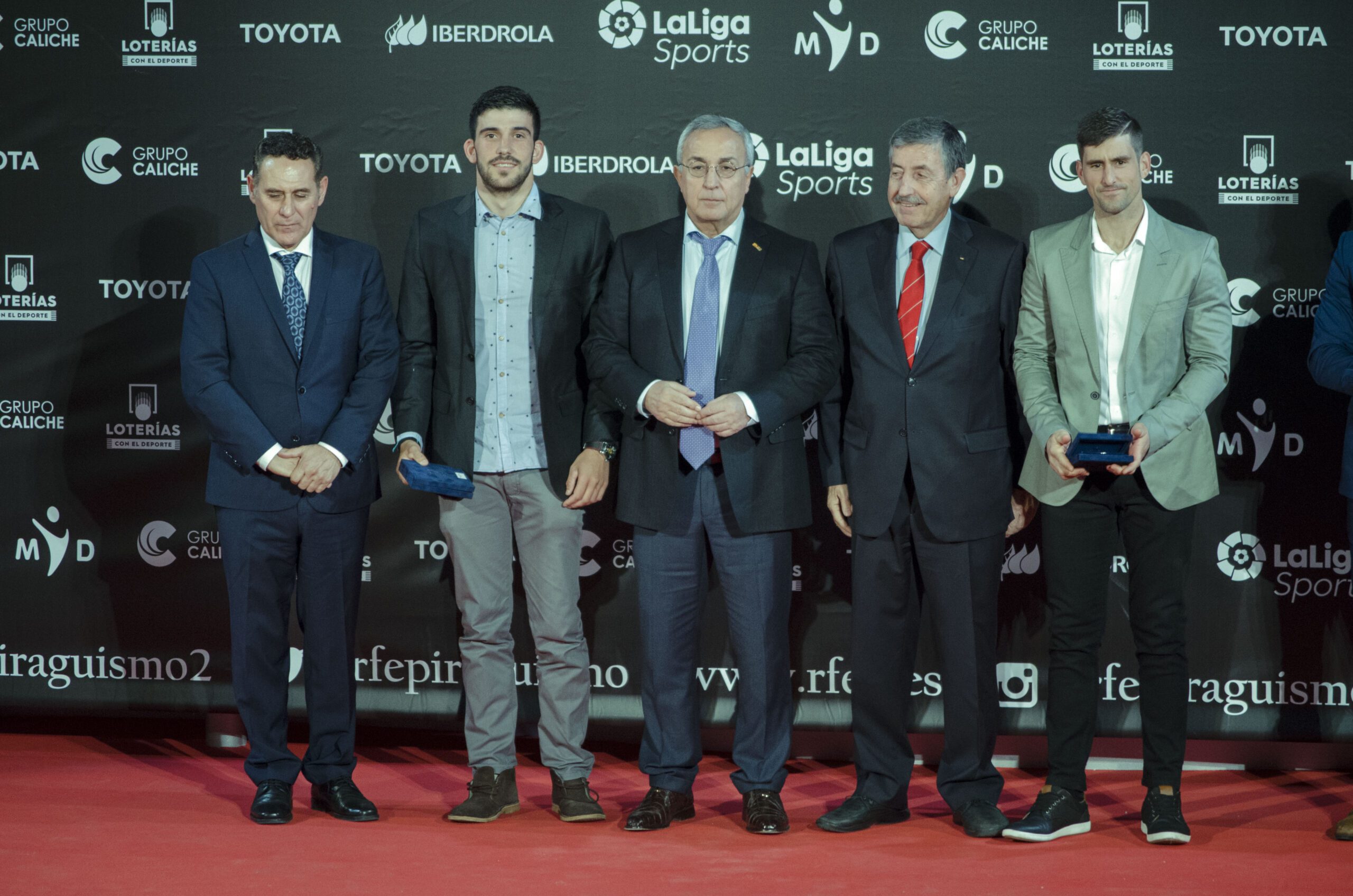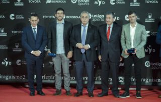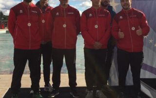 La gala Nacional de la Real Federación Española de Piragüismo se celebró el sábado 2 de febrero en el auditorio del Comité Olímpico Español. Como en las últimas ediciones el Club tubo una notable presencia. Recibieron el homenaje de todo nuestro deporte los jugadores de kayakpolo del Equipo Nacional que ganaron la medalla de bronce en el último Campeonato del Mundo. El equipo lo dirige Jorge Pérez, Koke, que ya conoce el camino al escenario para recoger homenajes fruto de la colección de medallas en Europeos y Mundiales. Alvaro Hijano, Pi, y Sergo Villarubia, Villa, debutaban en estas lides y recibieron junto a sus compañeros el homenaje de la RFEP y a modo individual la medalla del COE por sumarse a la lista de medallistas en Campeonatos del Mundo. También se reconoció los méritos de Mario Pérez, que ha sido elegido miembro del comité de kayak polo de la Federación Internacional de Canoa, FIC, donde podrá trabajar para impulsar la modalidad en la que lleva media vida. Una gran satisfacción para