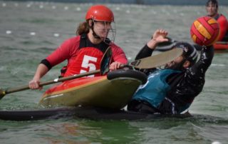 En Abril competiciones mil En Abril se disputó el segundo torneo de primera división de kayak polo de chicas en las instalaciones deportivas madrileñas de Puerta de Hierro. Las nuestras volvieron a meterse en la final pero dos tarjetas amarillas en un momento del partido les apartó de la victoria. El equipo sigue mejorando con la mayor compenetración de las jugadoras y apunta a lo mas alto en los siguientes torneos. El equipo de segunda también disputo su segundo torneo coincidiendo con el de chicas. Perdieron en su grupo los dos primeros partidos y acabaron novenos. Los pequeños de Aguas Tranquilas tuvieron su regata de Liga Madrileña en el parque Juan Carlos I en Madrid. Se desplazaron 16 chavales y la mitad de ellos volvieron con una medalla al cuello. Jornada muy divertida y productiva de los pequeños. Por último los juveniles se desplazaron al embalse de Trasona, Avilés, Asturias, a disputar la Copa de España de 1000 metros. Daniel Saiz sobre la canoa finalizo sexto en la final B